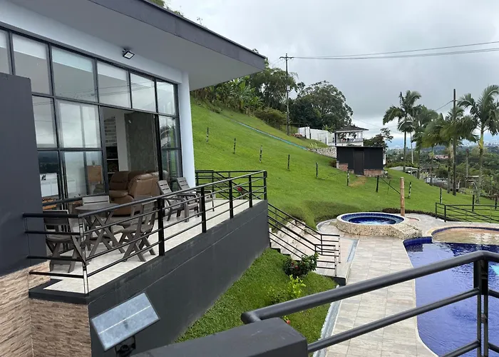 During the stay at Finca Turistica Casa Marella Alojamiento Rural Pereira Risaralda, guests can indulge in a hot tub or visit Parque Consota Recreation Center, located 4.5 km away. The 8-bedroom villa features opportunities for ping pong in the area, a 10-minute ride from the multi - purpose Hernan Ramirez Villegas Stadium.
